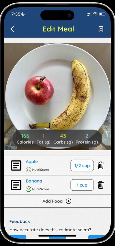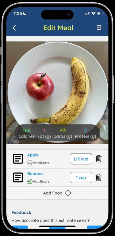 Verifikasi Hasil Deteksi: Periksa hasil analisis AI yang muncul di layar dan lakukan koreksi jika diperlukan, seperti mengubah jenis makanan atau menyesuaikan estimasi porsi yang terdeteksi.