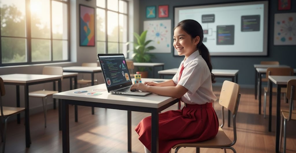 Anak SD sedang Belajar Melakukan Vibe Coding
