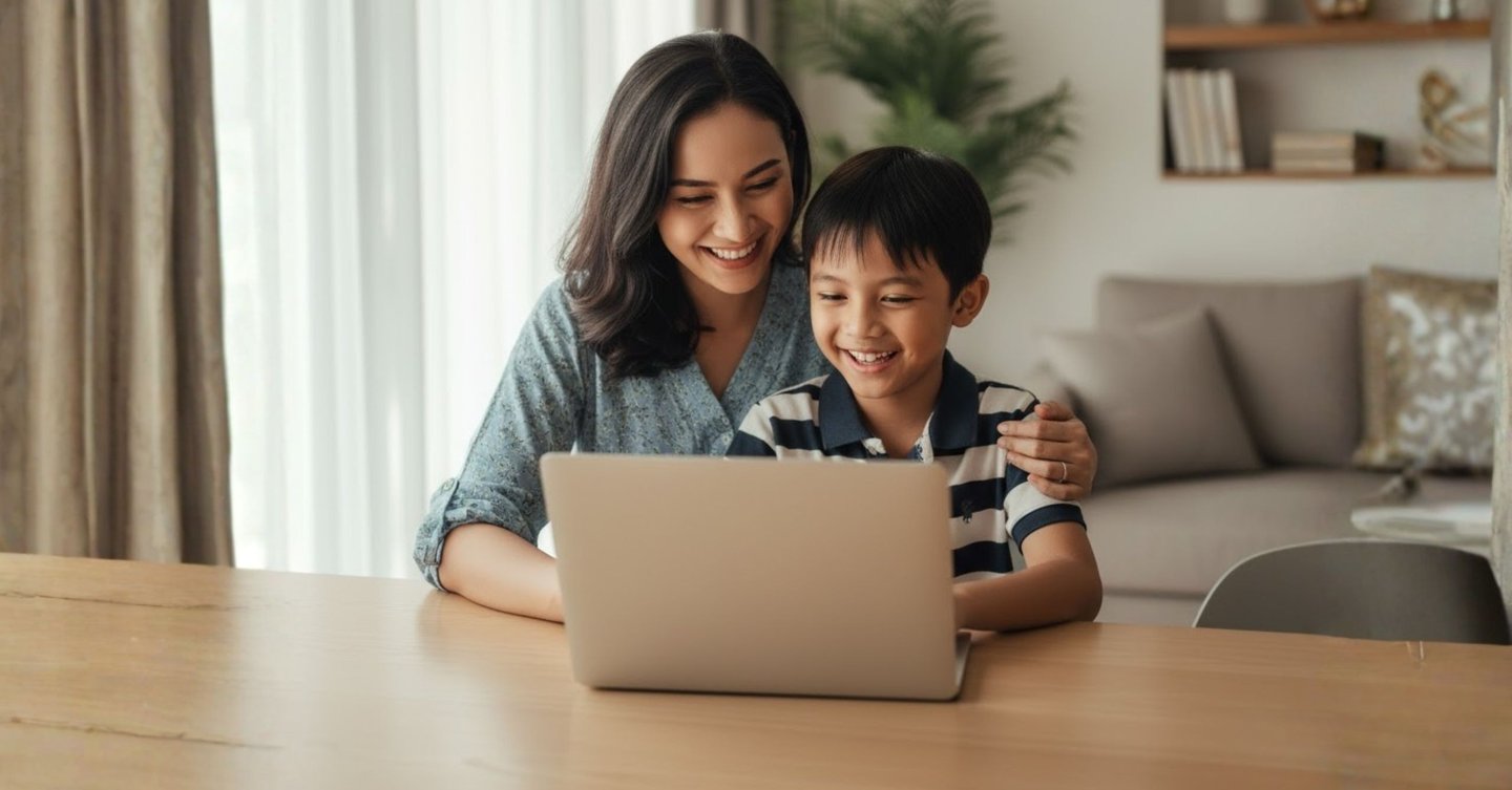 Ilustrasi AI : Ibu dan Anak Belajar Vibe Coding Bersama